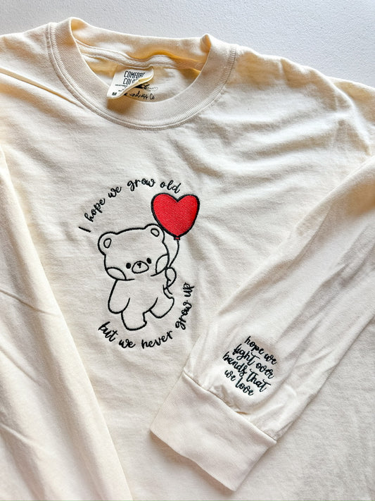 Never Grow Up - Teddy Bear || Embroidered Tee Shirt, Long Sleeve, Crewneck. and Hoodie
