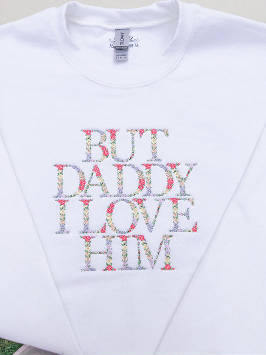 But Daddy ~ Floral Embroidered Crewneck, Hoodie, and Tote bag