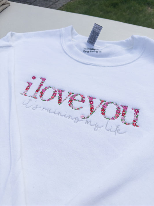 i love you / ruining my life ~ Fortnight Floral Embroidered Tee, Crewneck, Hoodie, and Tote bag
