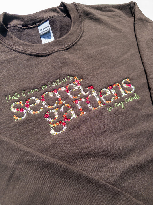 Secret Gardens ~ Hate it Here || Floral Embroidered Tee, Crewneck, Hoodie, and Tote bag