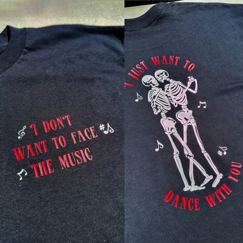 Face The Music - Dancing Skeletons || Louis Skull/Heart Tee Shirt, Crewneck, and Long Sleeve