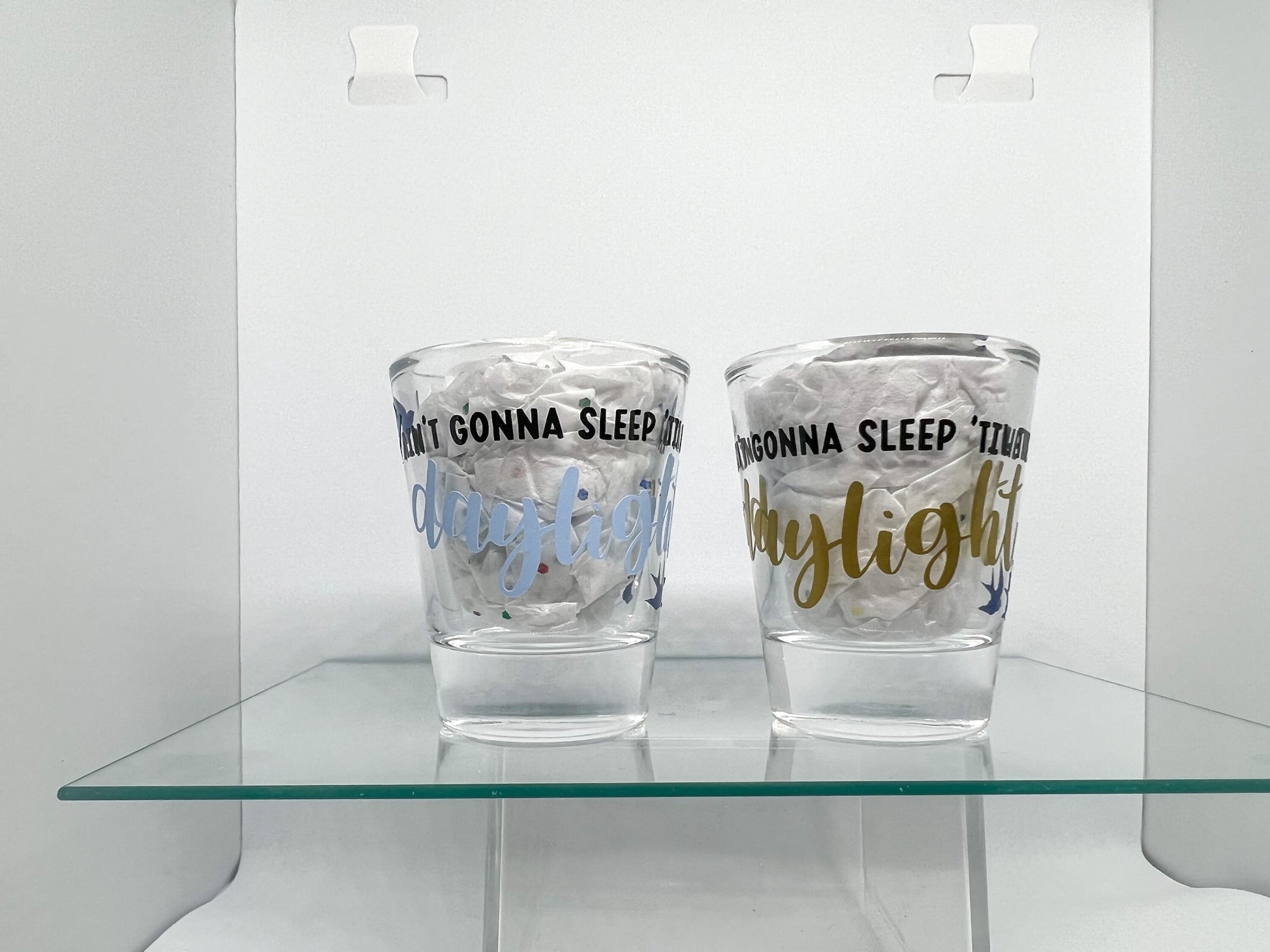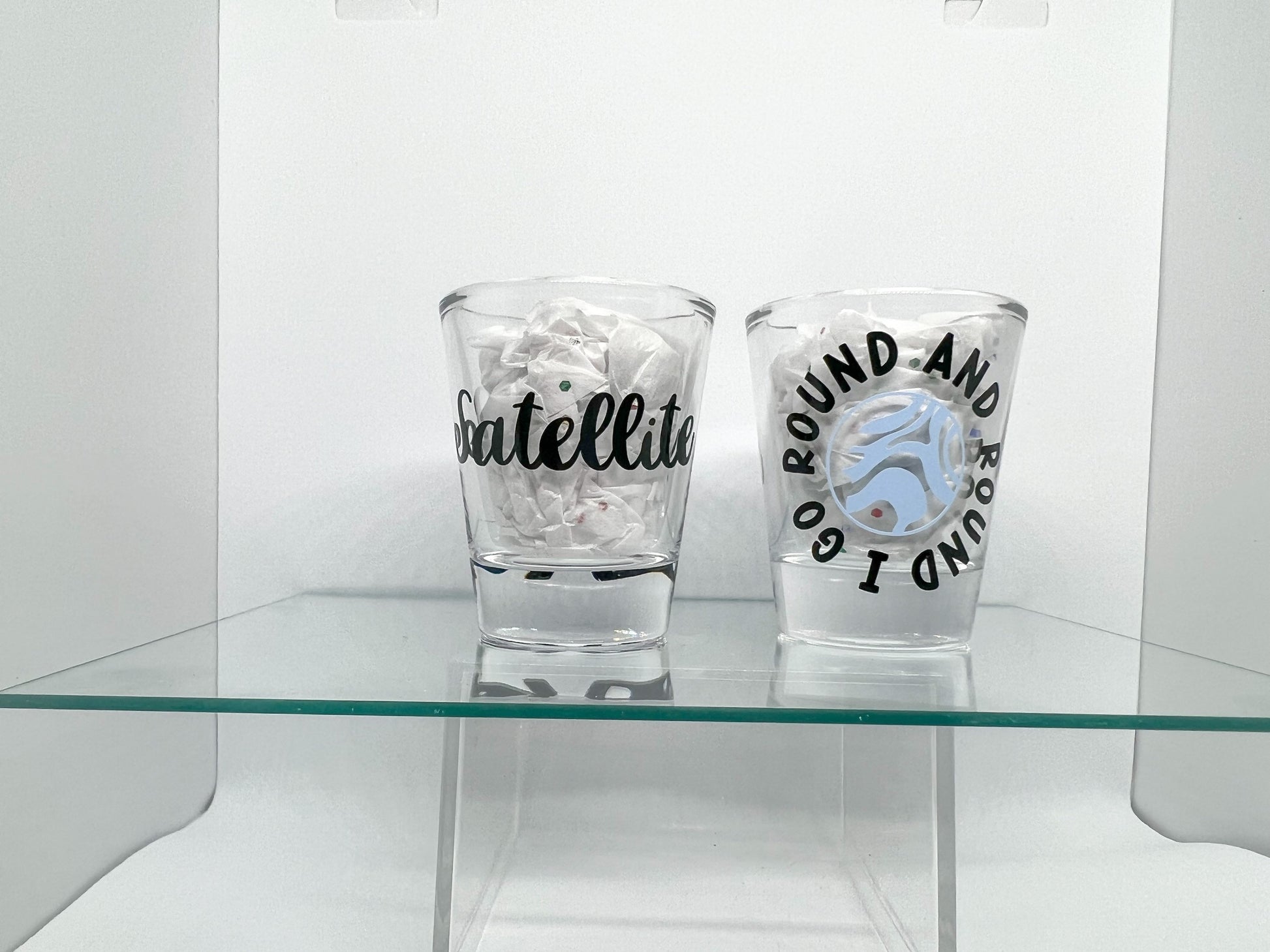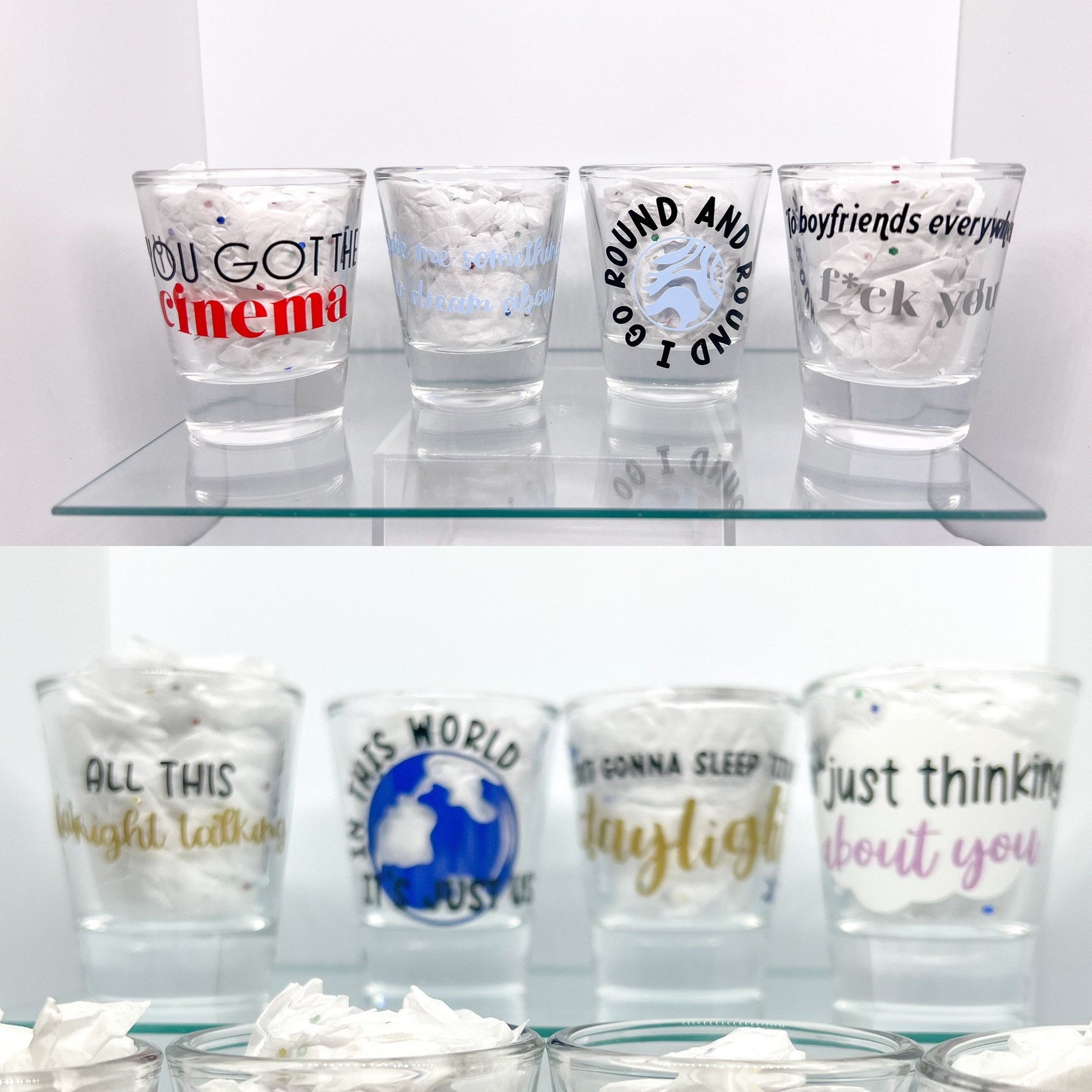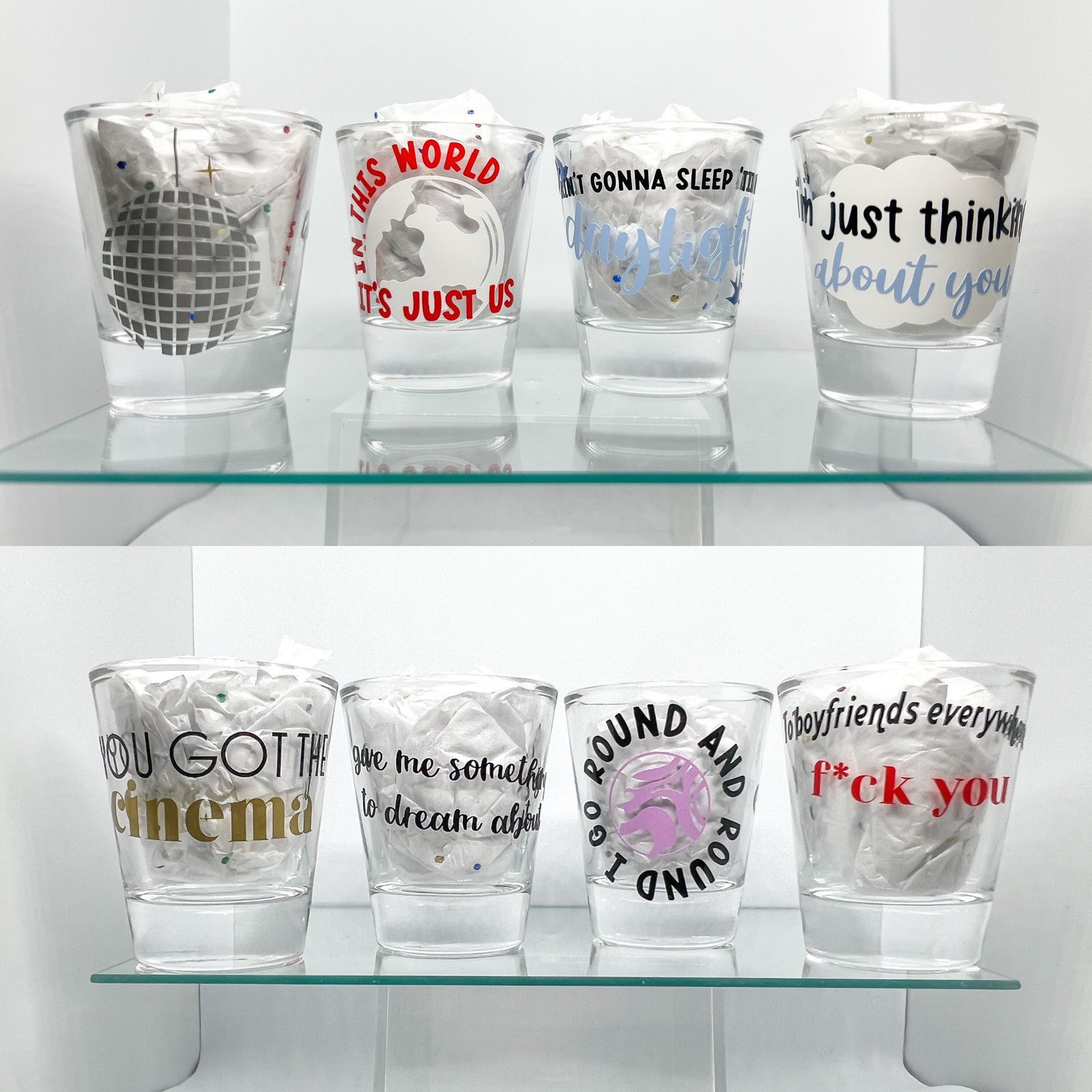 All shot glass packs come with two free mini stickers.