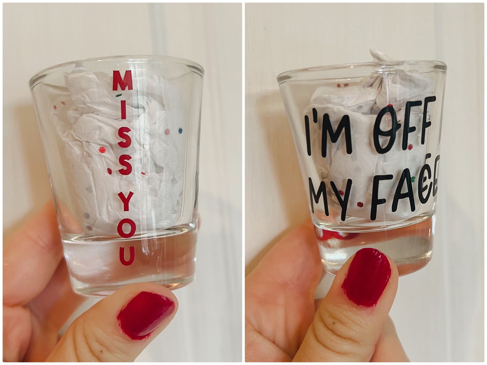 Pack of 4 Louis inspired shot glasses.- Miss You || "I'm off my face"