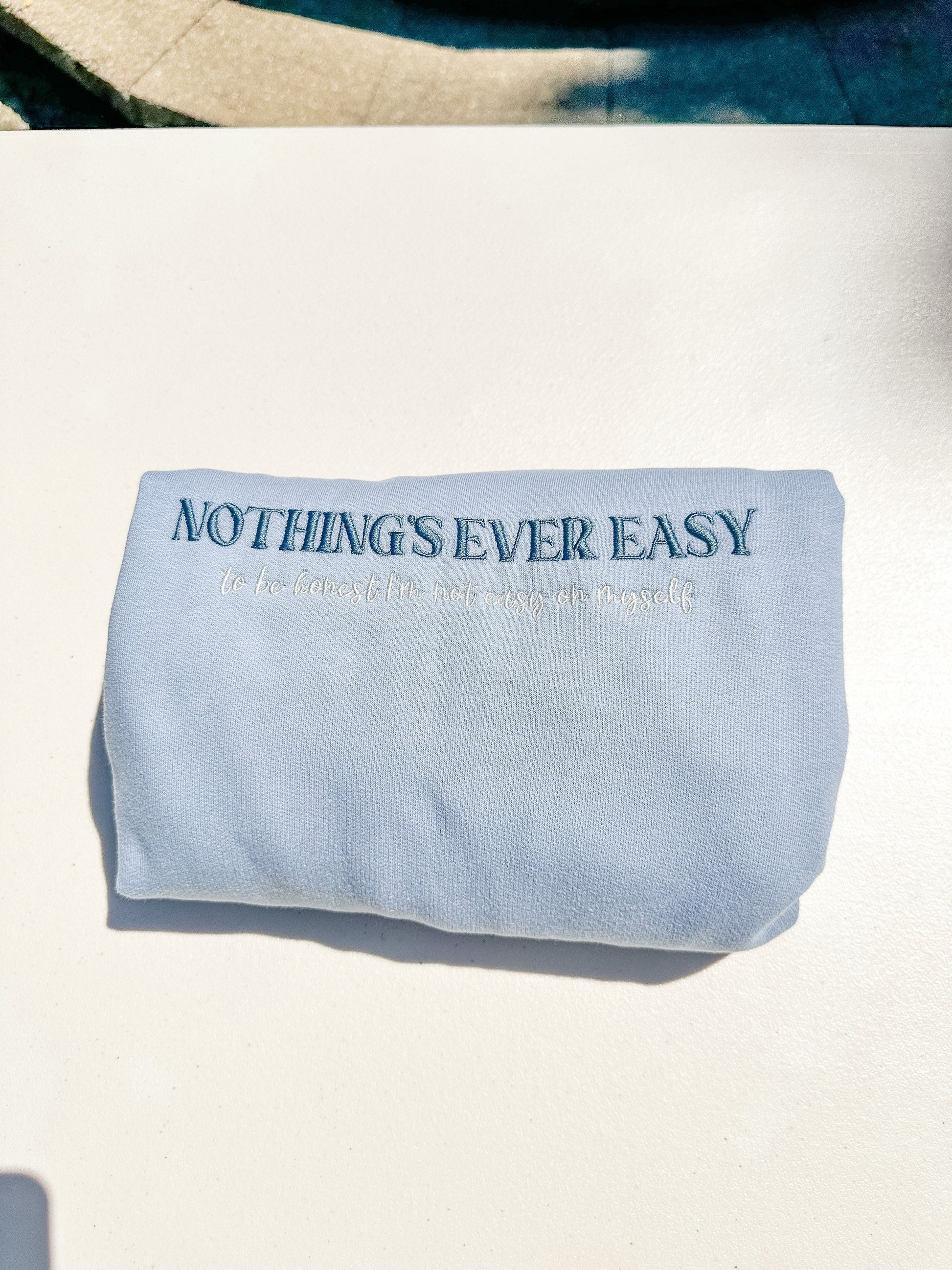 Nothing's Ever Easy || Holding on To Heartache || Embroidered Louis Extra Soft Lightweight Crewneck and Hoodie, and Comfort Colors Tee Shirt