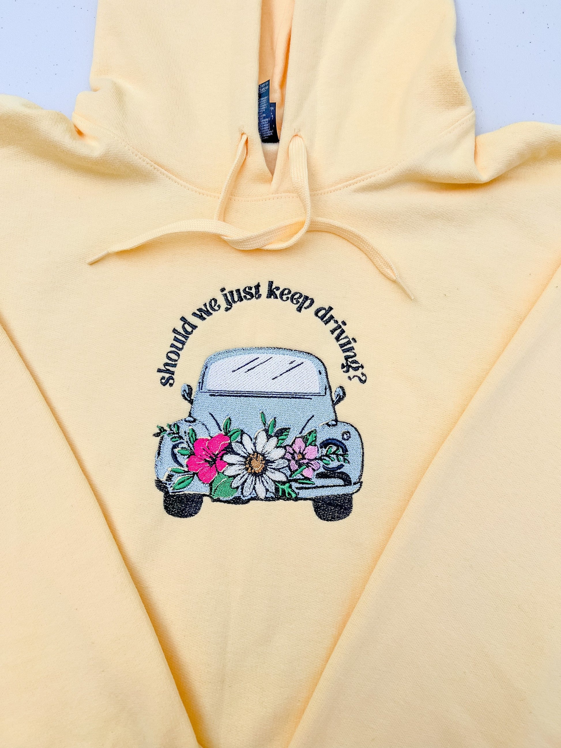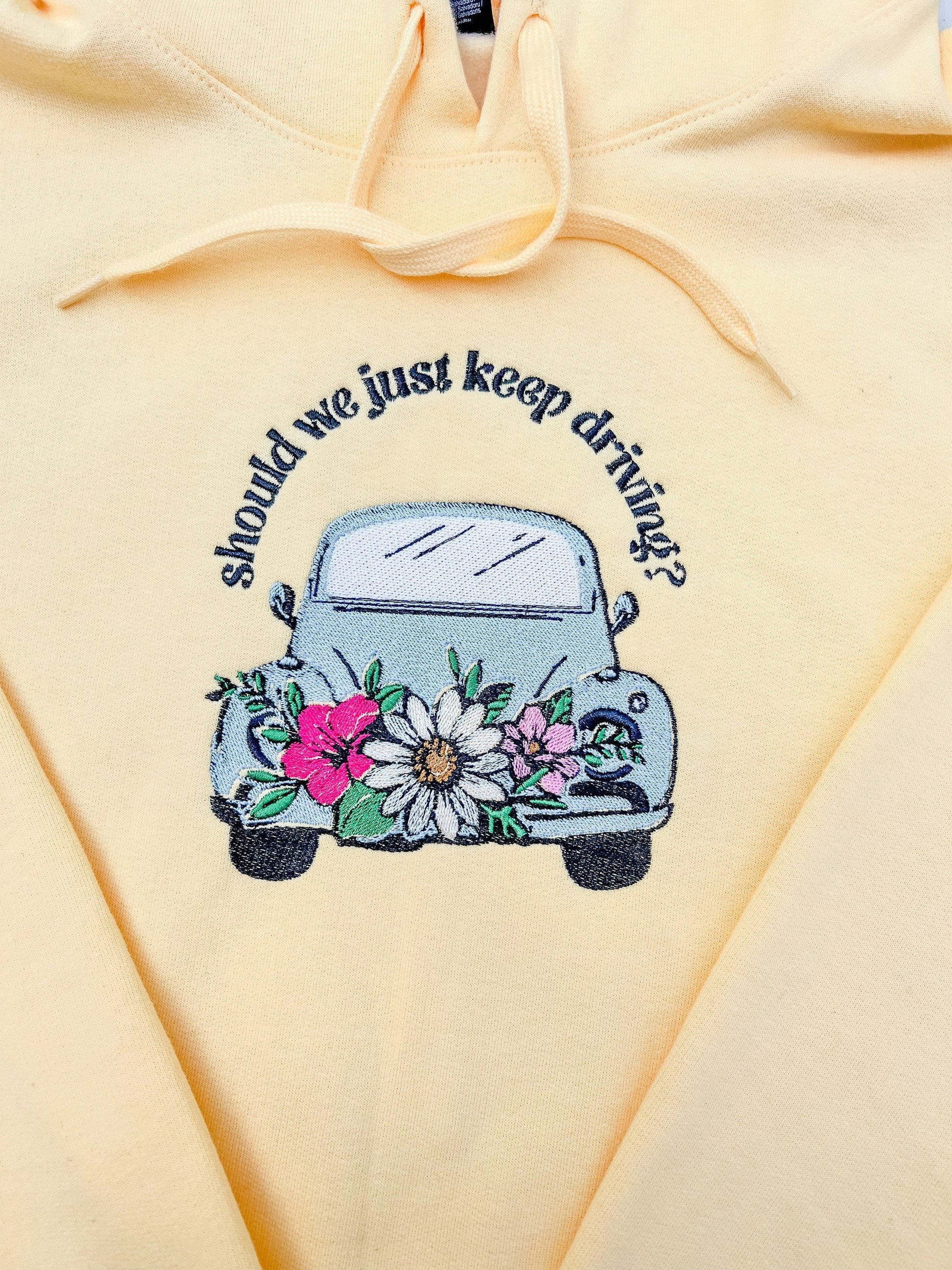 Should We Just Keep Driving - Floral Car || Harry Embroidered Crewneck and Hoodie